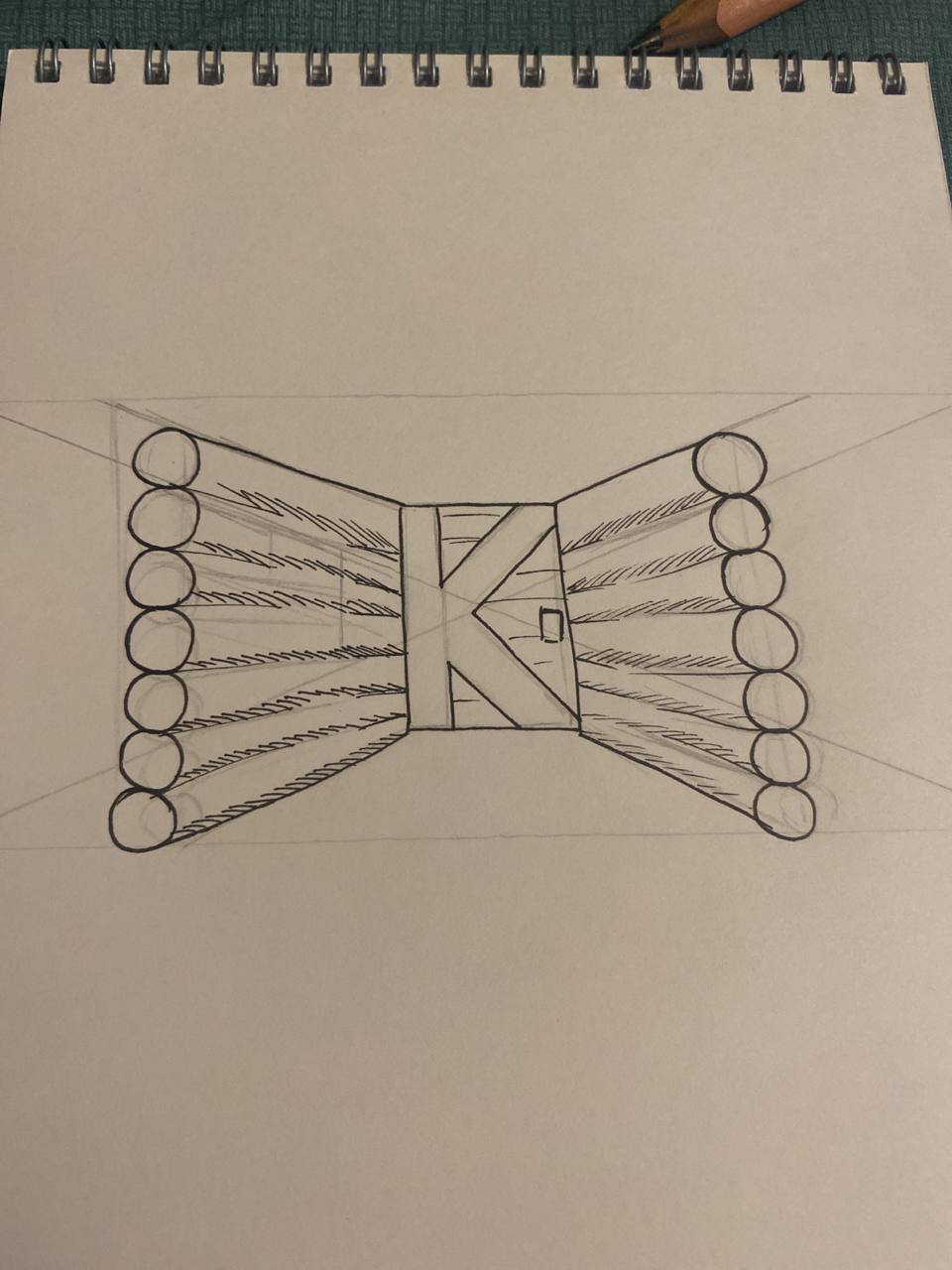 Этап 2. Концепция дома из сруба с дверью и буквой «К»